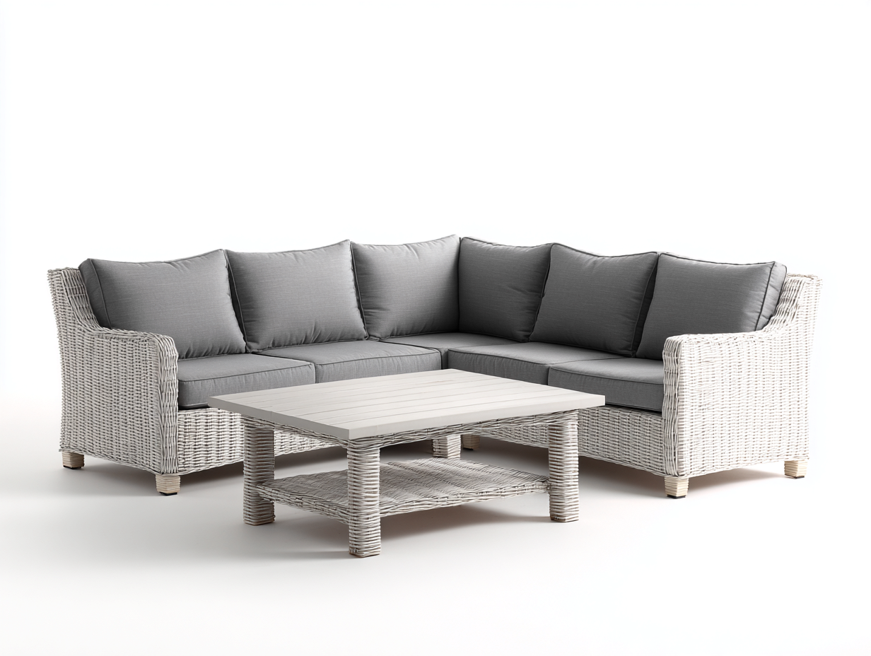 Divani da esterno - rattan sintetico-legno-tessuto - 264x264x82 cm - bianco sporco-grigio - stile moderno