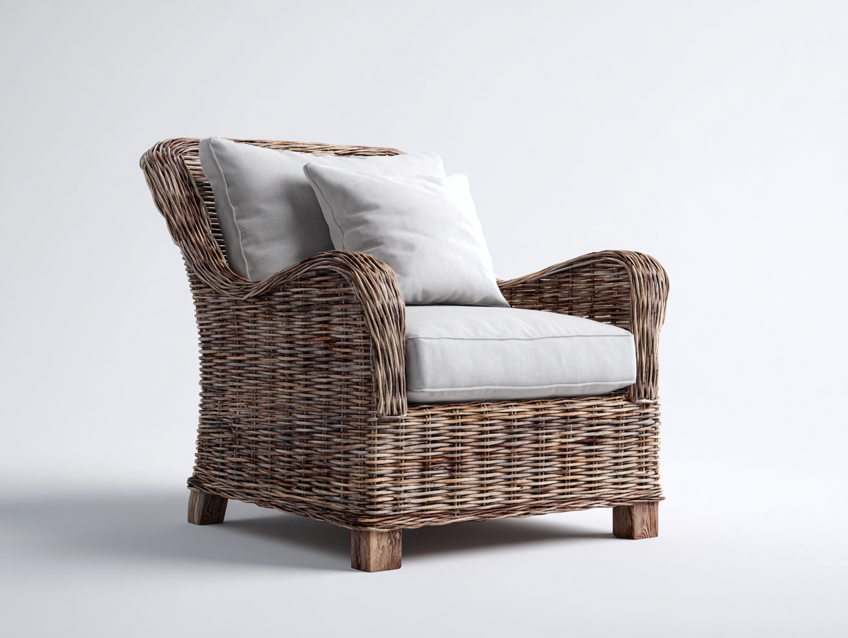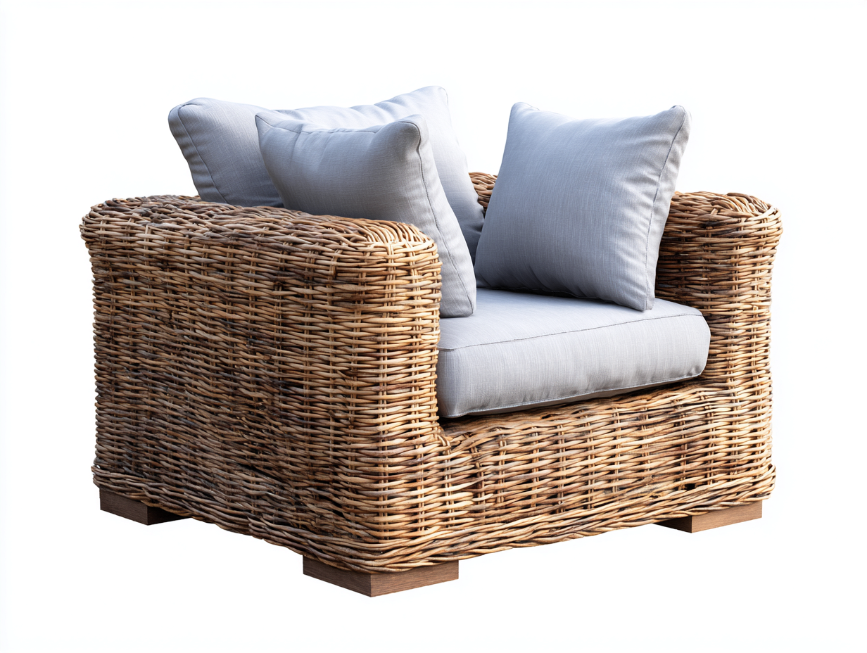 Poltrona da giardino - rattan-legno-tessuto - 92x82x78 cm - grigio chiaro-naturale - stile moderno