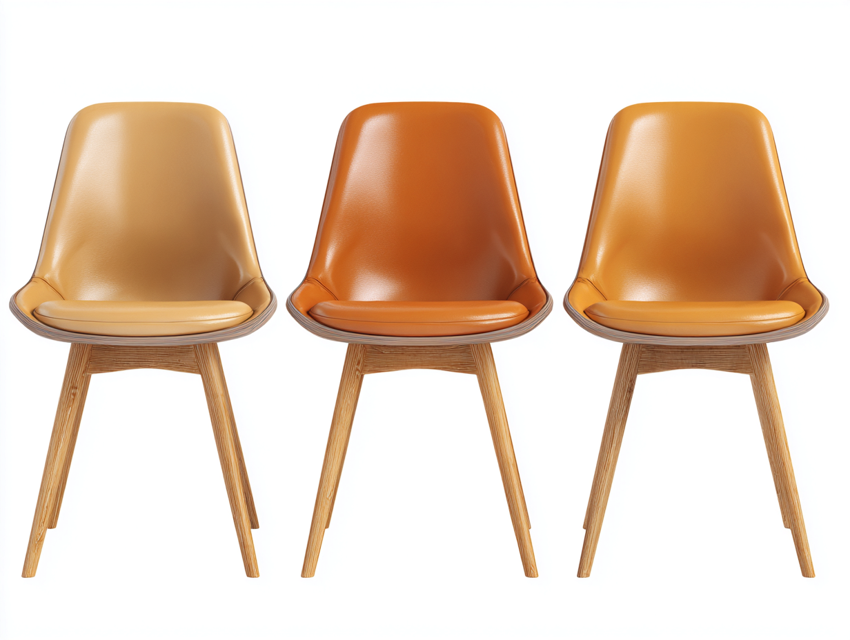 Rivestimento in pelle sintetica disponibile nelle tonalità marrone chiaro, arancione e marrone, con superficie liscia e facile da pulire. Le gambe sono realizzate in legno con finitura naturale, progettate per garantire stabilità e durata. Le superfici e le cuciture sono curate per un risultato ordinato e funzionale.