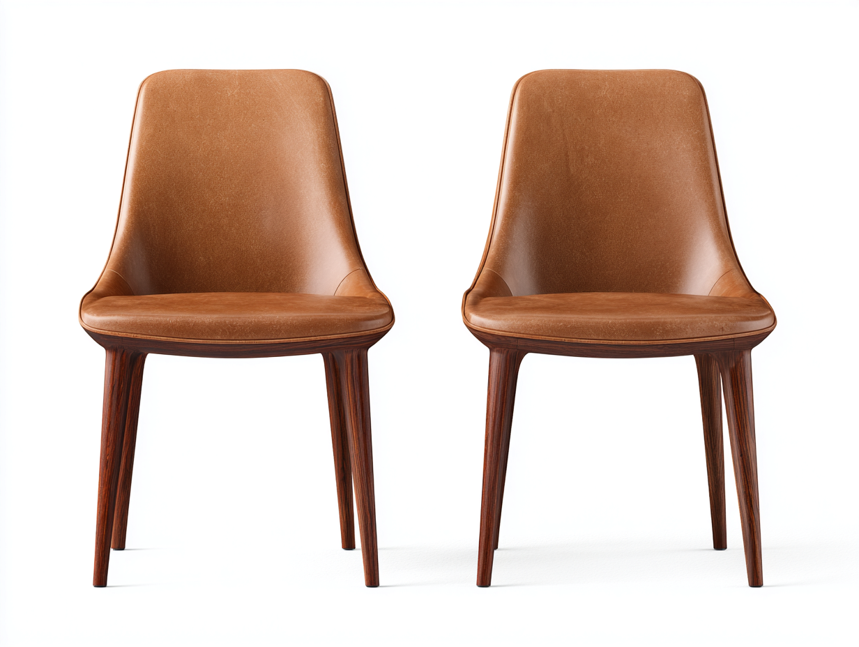 Set di sedie da pranzo dallo stile moderno e lineare, ideali per arredare ambienti domestici come cucina e sala da pranzo. La forma avvolgente dello schienale e la seduta imbottita offrono una seduta confortevole, mantenendo un aspetto elegante e armonioso.